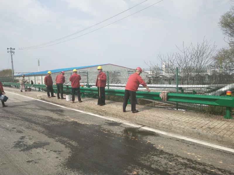 正在對(duì)護(hù)欄進(jìn)行清洗