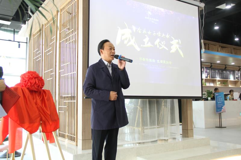 儀式上,余志華帶領(lǐng)相關(guān)領(lǐng)導(dǎo)共同為“金鼎女子讀書(shū)會(huì)”揭牌。