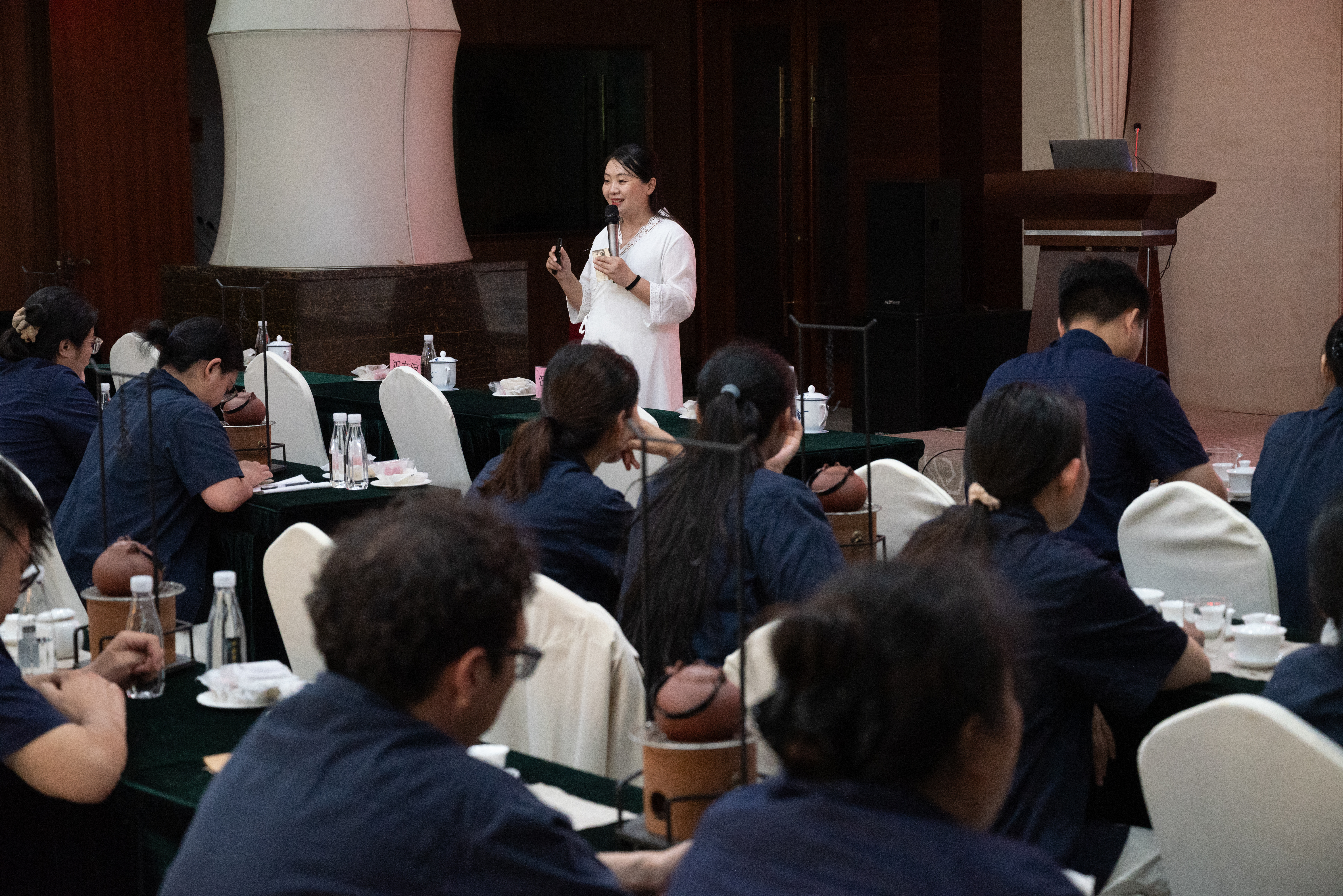 互動環(huán)節(jié),茶藝老師授課并指導實踐,參會人員沉浸式體驗浮梁紅茶沖泡,感受茶藝魅力。